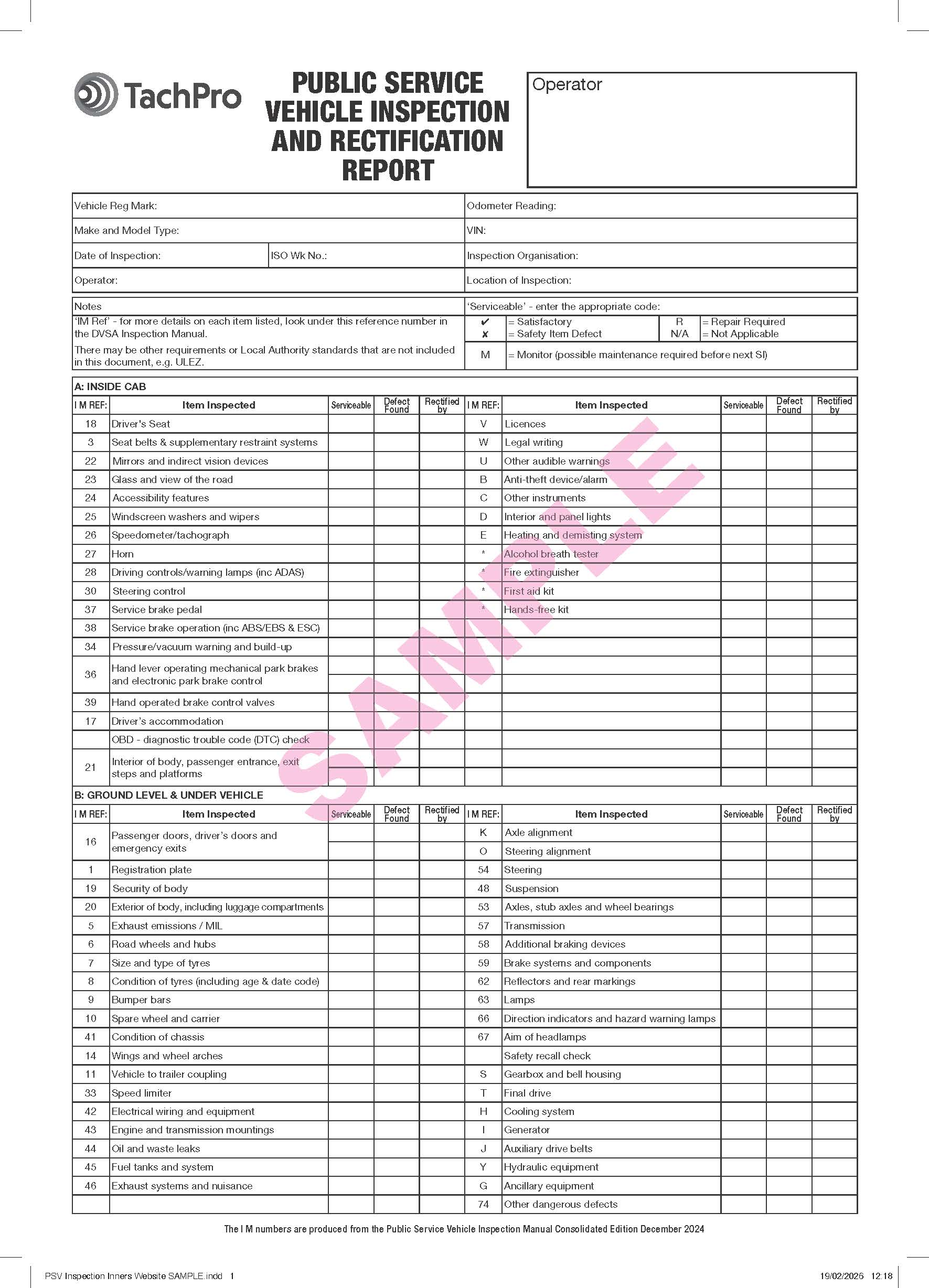 A4 pad 100 sheets per pad - easy to use with a clear, concise layout. Updated with the latest VOSA / DVSA guidelines.